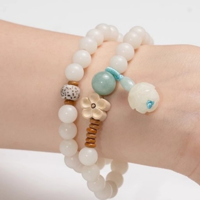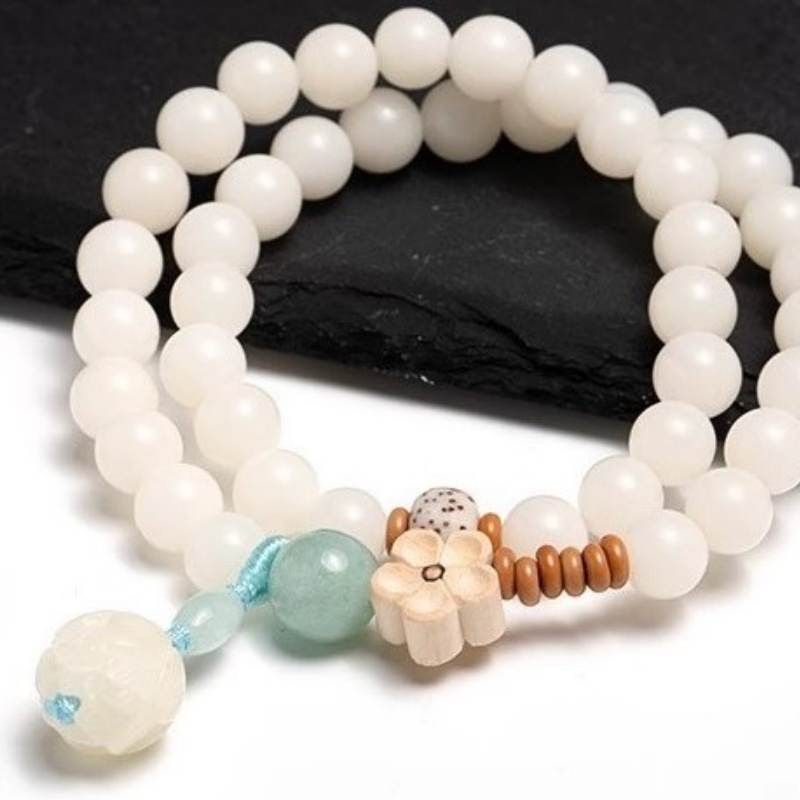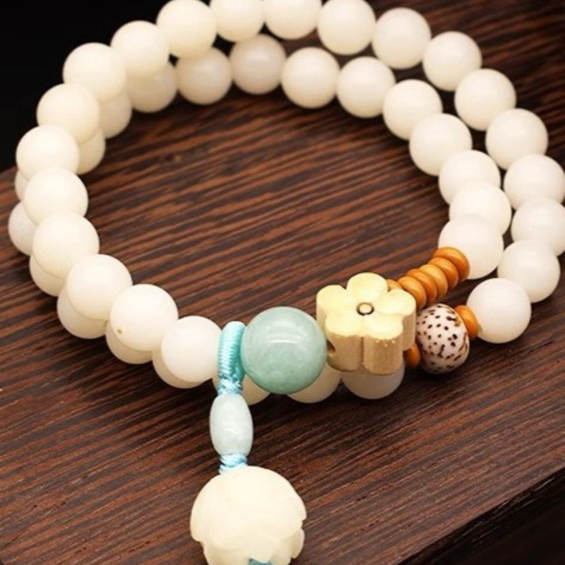 Elevate your spiritual journey and style with our White Bodhi Root Mala Bracelet. Crafted from premium white bodhi root, these beads are not just beautiful but also carry profound energy. Bodhi root is believed to calm the mind, enhance focus, and bring a sense of peace, making it perfect for meditation and mindfulness practices. The lotus charm adds an extra layer of symbolism, representing purity and enlightenment. Whether used as a bracelet, necklace, or prayer beads, this mala is a wonderful companion for those seeking spiritual growth and the auspicious benefits of feng shui.